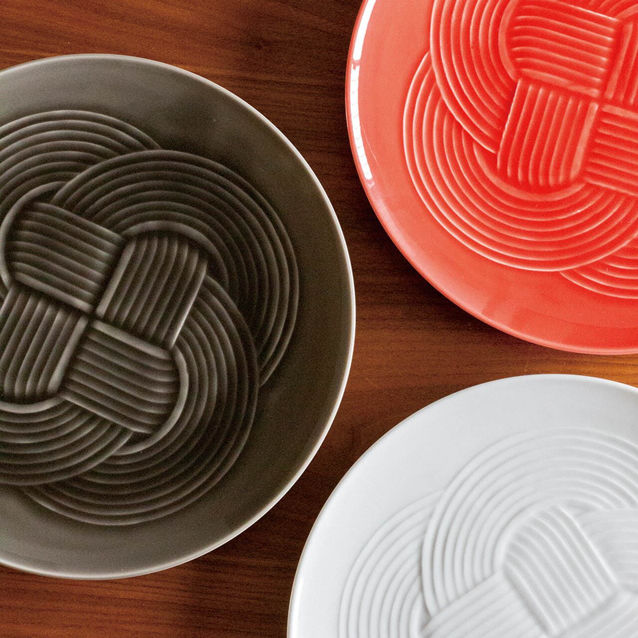 「水引」デザインのやわらかな凹凸に釉薬が施す色の濃淡がとても美しく目をひかれます。